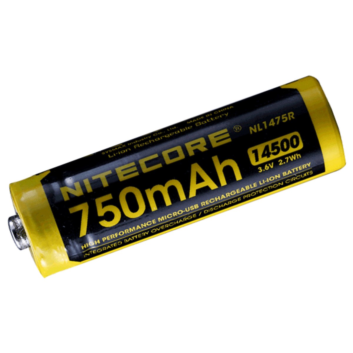 01. Επαναφορτιζόμενη, μέσω θύρας USB, μπαταρία Ιόντων Λιθίου (Li-ion) NITECORE NL1475R (14500)