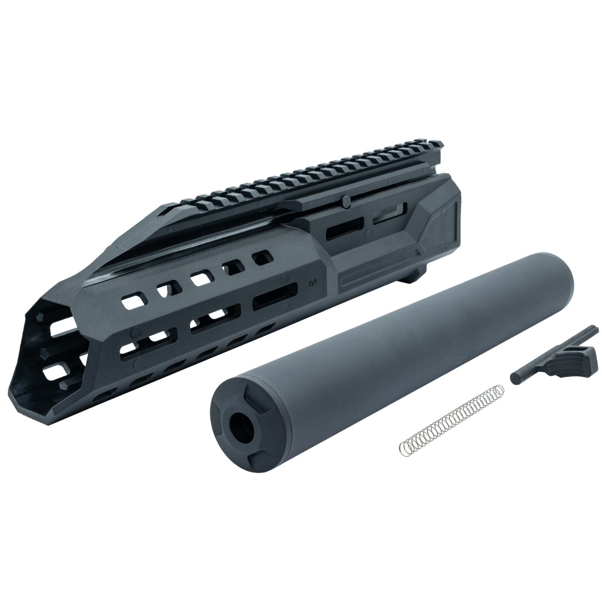Η ράγα Picatinny πλήρους μήκους στην κορυφή επιτρέπει την εύκολη τοποθέτηση σκοπευτικών , ενώ οι πολλαπλές υποδοχές M-Lok στα αριστερά, στα δεξιά και στο κάτω μέρος παρέχουν ευελιξία για την προσάρτηση λαβών, φώτων, λέιζερ και άλλων τακτικών αξεσουάρ. Ο εργονομικός σχεδιασμός του προσφέρει μια άνετη και τακτική λαβή, καθιστώντας το πρακτικό και κομψό.