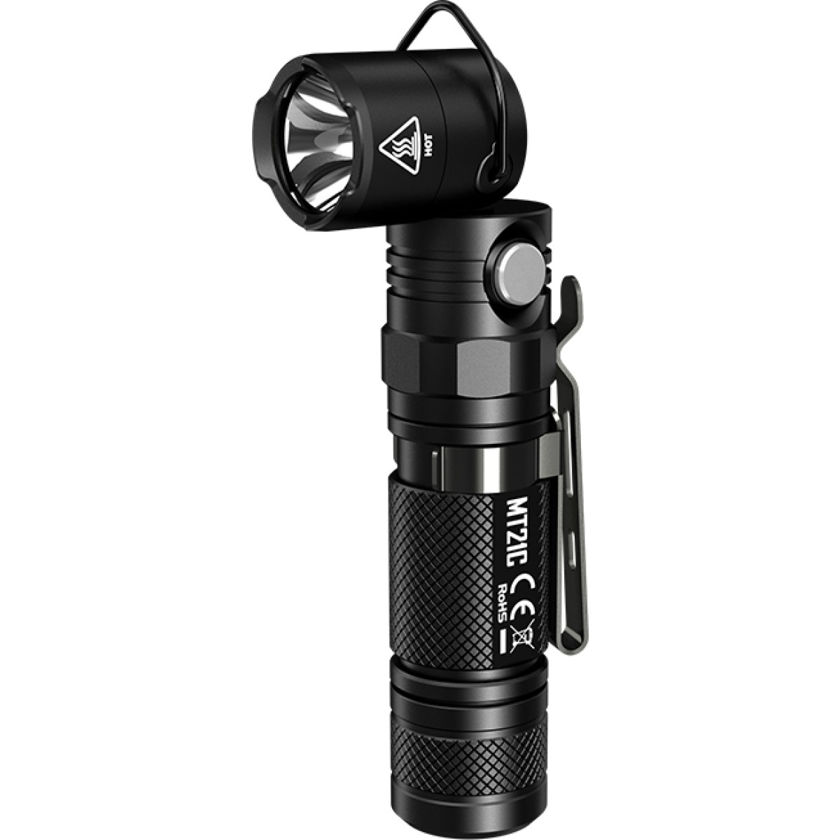 Πολύ-λειτουργικός φακός με σπαστή κεφαλή έως και 90°. Μικρού μεγέθους φακός καθημερινής χρήσης, μαγνητικό πίσω μέρος, μεταλλικό χερουλάκι. Η σπαστή κεφαλή επιτρέπει την χρήση του είτε σε ευθεία είτε υπό γωνία έτσι ώστε να μπορεί να προσαρμοστεί σε κάθε ανάγκη φωτισμού. Το Led Cree XP-L HD V6 που ενσωματώνει, αποδίδει 1000 Lumens και σε συνδυασμό με την σπαστή κεφαλή των 90° , που ρυθμίζεται πολύ απλά με το ένα δάχτυλο, προσαρμόζεται σε κάθε σενάριο φωτισμού. Με το κλιπ από ανοξείδωτο ατσάλι με επίστρωση τιτανίου ο MT21C μπορεί να προσαρμοστεί σε τσέπες, σακίδια ή οπουδήποτε αλλού για χρήση χωρίς χέρια. Παράλληλα η μαγνητική του βάση και το μεταλλικό χερουλάκι, του προσφέρουν πολλές εναλλακτικές λύσης προσάρτησης. Ο MT21C είναι δηλαδή ένας πολύ-λειτουργικός φακός που μπορεί να χρησιμοποιηθεί τόσο σε βιομηχανικές ανάγκες , επιχειρησιακές στα σώματα ασφαλείας και τον στρατό όσο και σε καθημερινές ανάγκες στο αυτοκίνητο, το σπίτι ή το κάμπινγκ. Με τον μεταλλικό πλάγιο διακόπτη η πρόσβαση στις 5 επιλογές φωτισμού και τρεις 3 ειδικές φωτεινότητες είναι εύκολη και γρήγορη. Διαθέτει άμεση πρόσβαση στην πολύ χαμηλή ή στην πολύ ισχυρή φωτεινότητα. Δέχεται μπαταρίες 1×18650 ή 2xCR123 και σε συνδυασμό με τον εξαιρετικό ανακλαστήρα και το σταθερό ηλεκτρονικό κύκλωμα παρέχει ισχυρό, σταθερό, ομοιόμορφο φωτισμό που δεν κουράζει τα μάτια. Η ενσωματωμένη μονάδα εξελιγμένου ελέγχου της θερμοκρασίας ρυθμίζει την ένταση του φωτισμού και διατηρεί την μέγιστη απόδοση σύμφωνα με τις συνθήκες του περιβάλλοντος. Κάτω από τον κεντρικό διακόπτη υπάρχει ενδεικτική λυχνία που ενημερώνει για την ενέργεια που έχει απομείνει στην μπαταρία. Ανθεκτική κατασκευή με αντοχή στις πτώσεις, προστασία από ανάποδη πολικότητα και αδιαβροχότητα σύμφωνα με το πρότυπο IPX8 είναι μερικά από τα προτερήματα του.