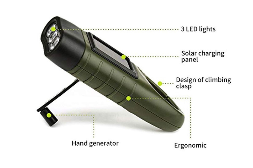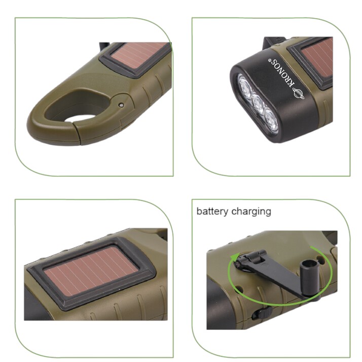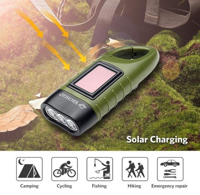 Φακός με Δυναμό και Ηλιακό Πάνελ αδιάβροχος με εργονομική λαβή Kronos