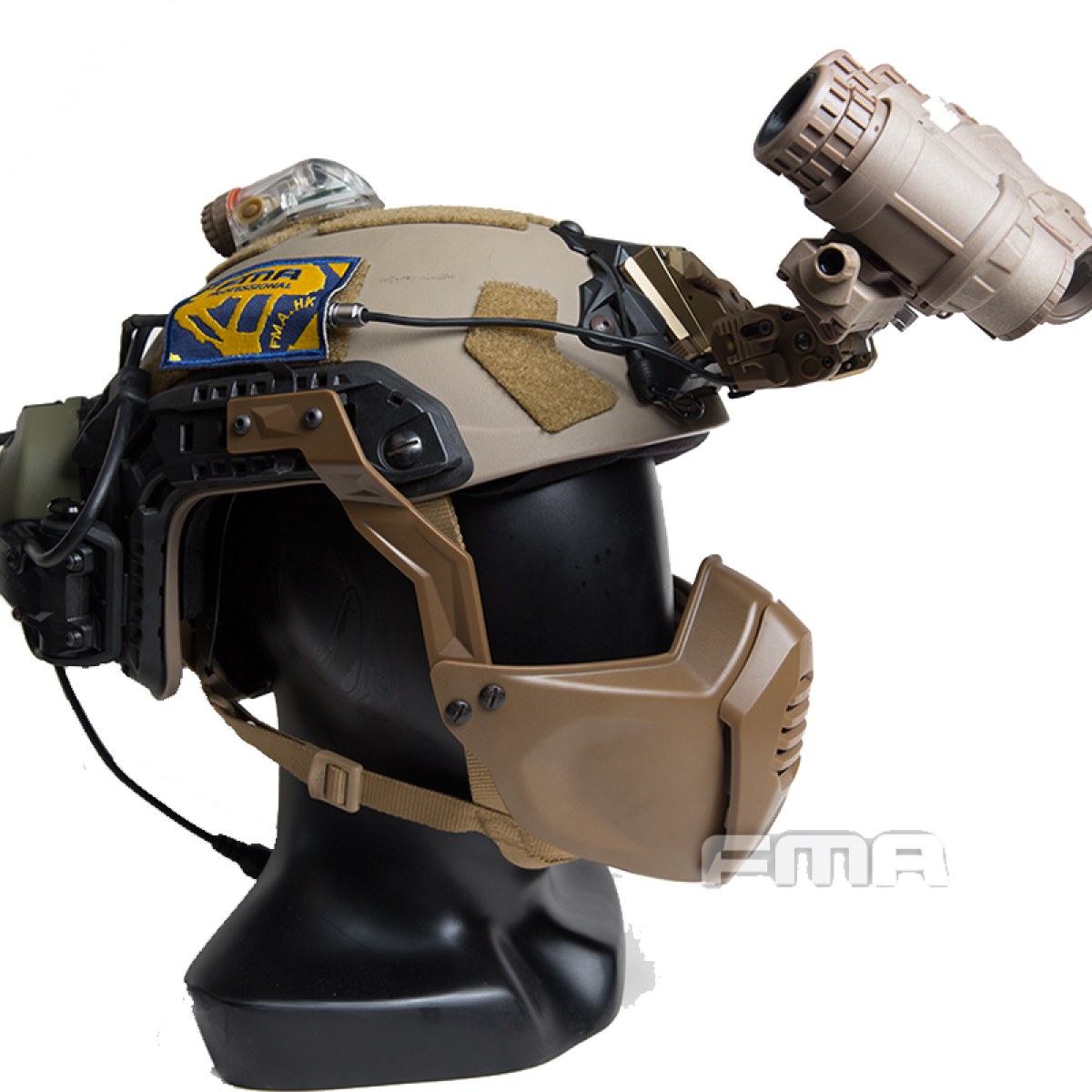 * Η FMA παρέχει μια ελαφριά επιλογή προστασίας της γνάθου με αυτό το προστατευτικό γνάθου από υλικό ABS, το οποίο συνδέεται με τη θέση της ράγας του κράνους μέσω δύο μεγάλων πλαισίων.