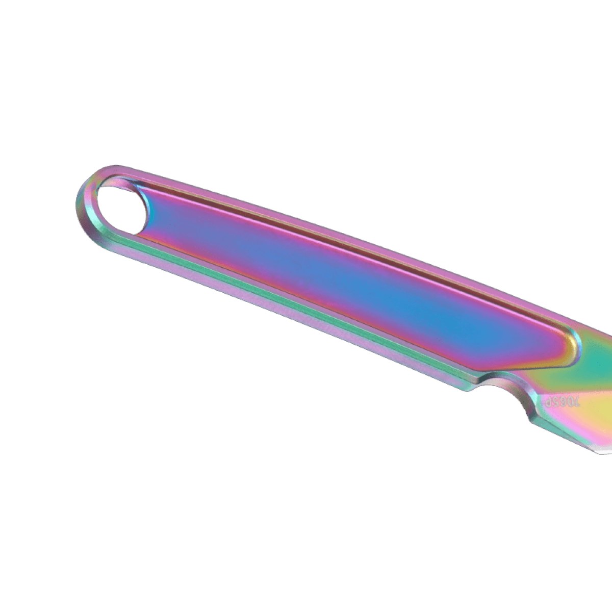 Αυτή η έκδοση του HangTi™ διαθέτει μια ιριδίζουσα επίστρωση νιτριδίου τιτανίου, καθώς και ένα μπρελόκ, κορδόνι και χάντρα σε χρώματα του ουράνιου τόξου, προσφέροντας μια φωτεινή πινελιά χρώματος. Χρησιμοποιούμενη παραδοσιακά στην Ιαπωνία για ακριβείς κοπές στην ξυλουργική και την κλωστοϋφαντουργία, η μορφή της λεπίδας Kiridashi στο HangTi™ καθιστά αυτό το ελαφρύ μαχαίρι ιδανικό για χαράξεις και εργασίες που απαιτούν λεπτή μύτη, ενώ η μύτη σε σχήμα βελόνας είναι εξαιρετική για το άνοιγμα συσκευασιών με φυσαλίδες και για την εύκολη διαχείριση κουτιών αποστολής.